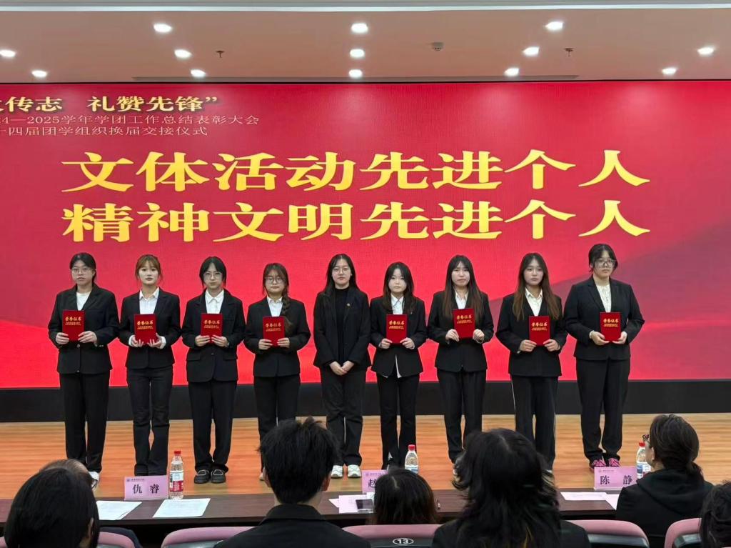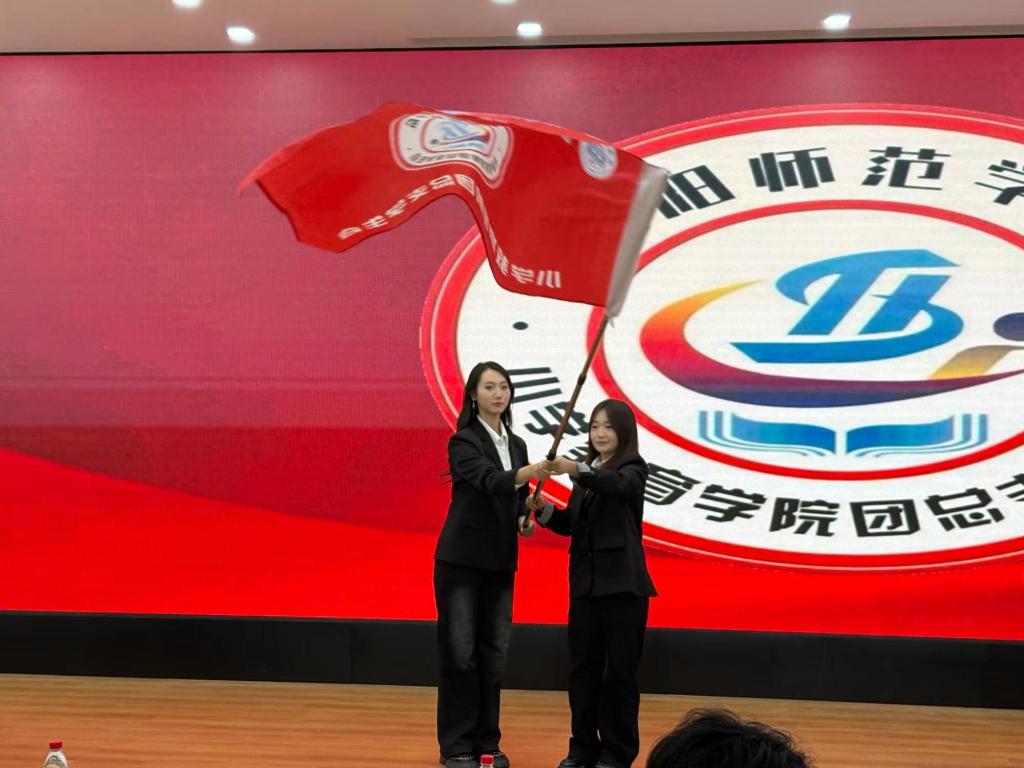 换届交接仪式将大会推向高潮。在全体师生的见证下,第二十三届团委学生副书记冯芷若与学生会轮值主席宋盈盈将象征责任与使命的团学组织旗帜,郑重交接到第二十四届团委学生副书记李欣洺与学生会轮值主席孙明伟手中。旗帜的传递,是精神的延续,更是崭新征程的开启。