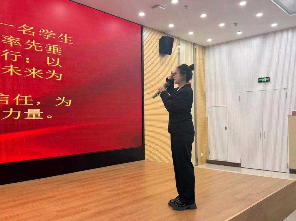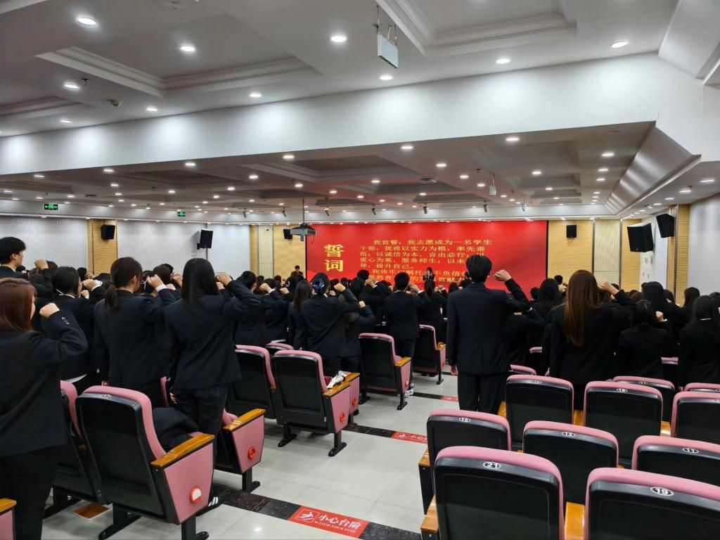 随后,在第二十四届团委组织部部长黄新竹的领誓下,新一届团学组织全体干部庄严宣誓,第二十三届学生干部一同重温誓词。铿锵有力的誓言回荡在整个会场,彰显了学生干部服务同学、奉献学院的坚定决心。